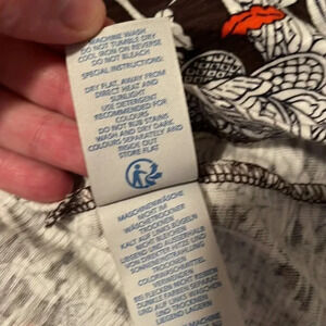 Tunic style swimsuit coverup. Never worn. Brown and white pattern with orange details.