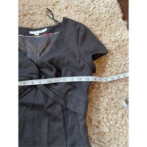No flaws. Has the side zipper closure. Size 4 regular, measurements are in the pictures. Grey color.