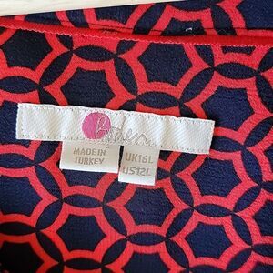 Boden women's belted v-neck maxi 3/4 sleeve red and navy dress 12L viscose