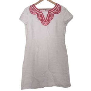 Boden women's size 6R White Peasant Linen style Dress w/ Red embroidered-Lined