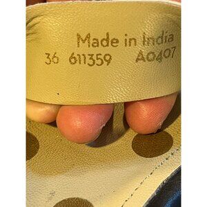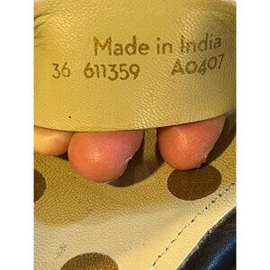 Condition: good condition, some heel drag and slight discoloration on metallic strap (see photos)