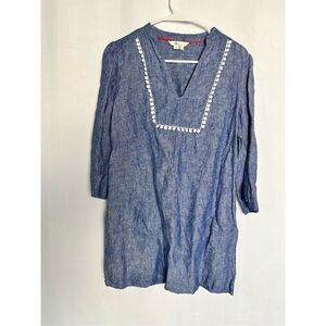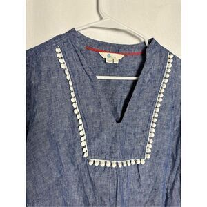 Boden 100% linen tunic top or dress. Excellent condition with Pom detailing. Size 8 petite