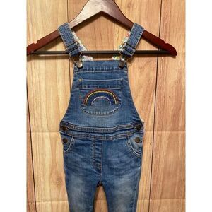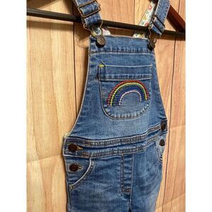 Boden 2-3Y 98cm Blue Jeans Denim Rainbow Embroidered Overalls pants girls Kids