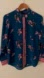 Stylish floral button-up shirt with pink and blue colors. Features a classic collar and long sleeves.