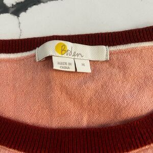 Experience the perfect blend of style and comfort with this Boden sweater, featuring a charming pink hue complemented by vibrant red accents. The crew neck design offers a classic look, while the soft fabric ensures a cozy feel. Ideal for adding a touch of elegance to your everyday wardrobe.