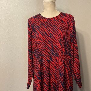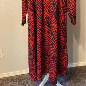 Boden Red & Blue Animal Print Long Sleeve Midi Dress Size 16