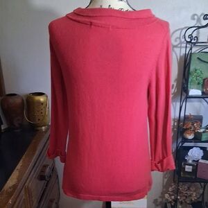 Stylish red long sleeve top with a unique neckline. Perfect for any occasion. Material tags was cut out.