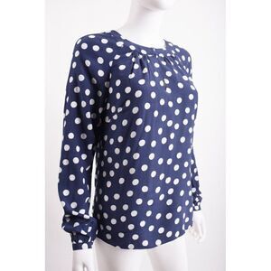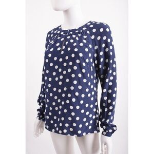 Boden Womens Eadie Blouse Shirt UK 6 US 2 Navy White Polka Dot Long Sleeve NWT