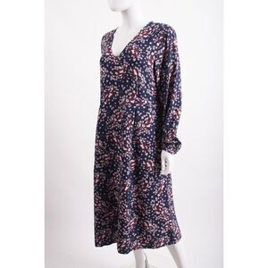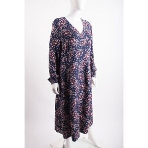 Boden Womens Easy Midi Dress UK 14 US 10 Navy Autumnal Leaves Long Sleeve NWT
