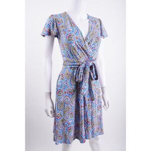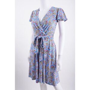 Boden Womens Jersey Wrap Dress UK 8P US 4P Blue Pink Paisley Floral NWT