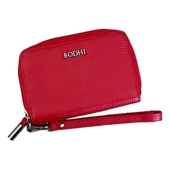 Bodhi Red Pebbled Leather Embossed Classic Small Wristlet Wallet