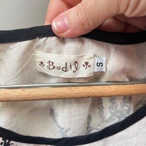 Bodil S Sleeveless Floral Print White & Black Linen Tunic Lightweight & Flowy De