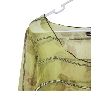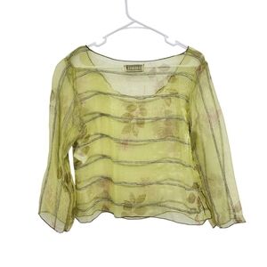 Bodil Women's Nylon Sheer Floral Contrast Stitching Boxy Blouse - M