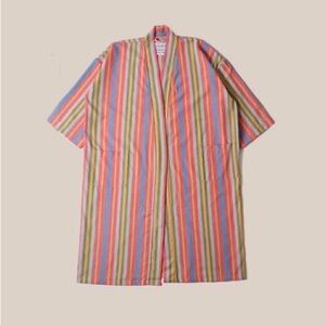 Our new Bodrum Robe is made in Denizli, Turkey on slower, more manual looms, just like our Peshtemals. This results in a higher level of craft, and a better hand-feel. They're made from 100% Turkish Cotton, which is renowned for its long-staple fibers meaning its soft & smooth, and only gets cozier & more absorbent with use. It's the good stuff. Soft to the touch in a medium weight, we designed it to be an all-year-round robe. It has a slightly dropped shoulder, wide sleeves, oversized hip pockets, and it's one size fits most.