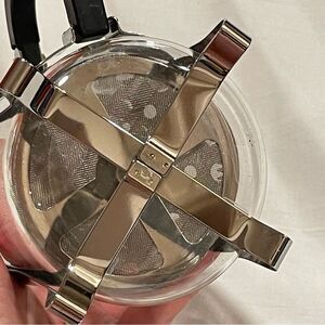An original, dome-topped Bodum French press coffee maker with contemporary flair. The plunger-style brewing method results in fresh French press coffee revered for its rich, full-bodied character. With its black accents and stainless steel frame plated in chrome, the glass French press graces your breakfast table or brunch buffet with classic style.