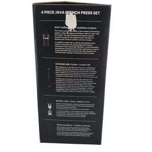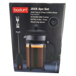 New Bodum Java Coffee Press 4pc Set Black French Press Coffee Maker. The box has some damage.