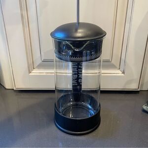 Nice French press. Make your coffee at home; save money and drink BETTER coffee. Comes apart for cleaning each piece. Bodum makes the best French press! Stainless steel and glass. Sturdy plastic frame stays cool to the touch.