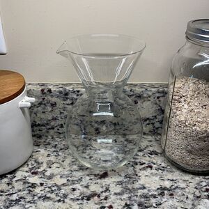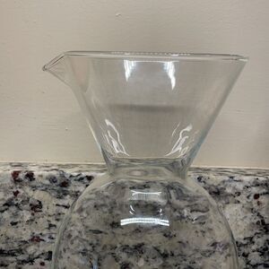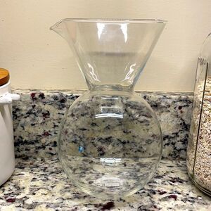 This glass Budum Carafe has an hour glass figure and a tiny lip on the top. Great for serving beverages of any sort at parties and such. Excellent condition. Approximate measurements shown in photos.