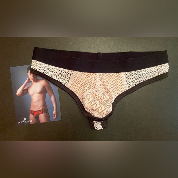 Body Aware Men’s White Mesh Thong Pouch Underwear Size Small