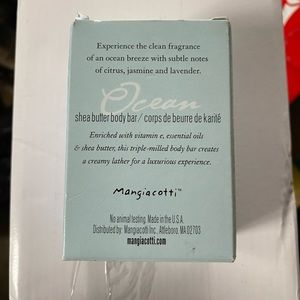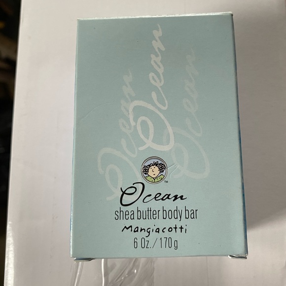 This is a brand new body bar by Mangiacotti. The scent is Ocean and it was a gift but I don’t really use bar soap. I took it out of the box to take a picture and it smells amazing! The box is slightly beaten up but the bar is in perfect condition. Please excuse the background of the pics.