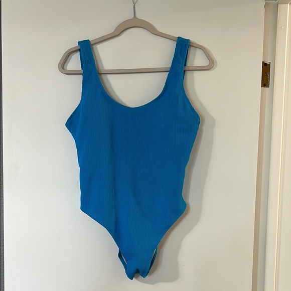 Dive into style with the Body One Piece Swimsuit, featuring a classic tank design and vibrant blue color. The wide shoulder straps and scoop neckline ensure a comfortable fit, while the high-cut leg openings add a touch of athletic elegance.