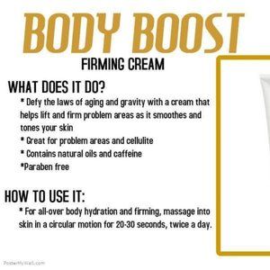 Body Boost will defy the laws of aging! Caffeine-infused cream that lifts and firms as it smooths and tones your skin
