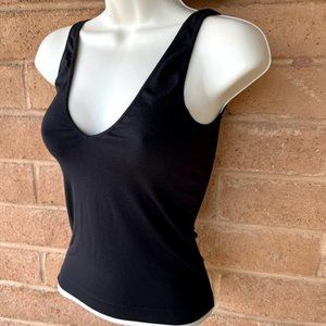Body By Victoria Victoria's Secret Shape Wear cami shaper in black. Women's size small. V neck in the front, round scoop shape in the back. Small area where fabric has come away from seam at right front armhole (see pics). Womens' size small.