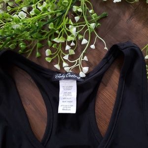 This fun Body Central tunic top has splashes of vibrant fun colors on bodice with black polyester and spandex racerback top and bottom stretch band Looks amazing with black leggings and fun vibrant pumps :-)