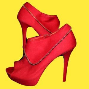 Like new red Body Central Heeled Booties. 3" heel, silver zipper detail. Zipper enclosure on side, open toe.