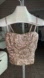 Measures 14 inches unstretched pit to pit and 21 inches shoulder to hem . It is gold sequins all on front and gauze back has built in bra and adjust straps. Wear under a blazer for this fall and winter