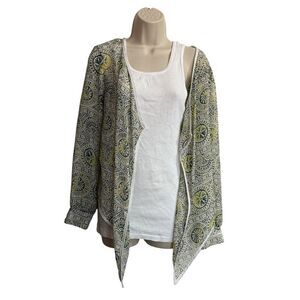 Body Central Sheer Green Graphic Print Tie Open Front Top Size M