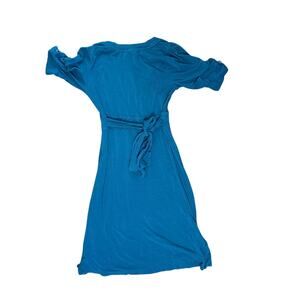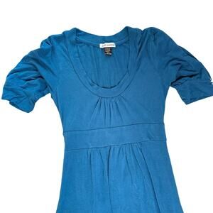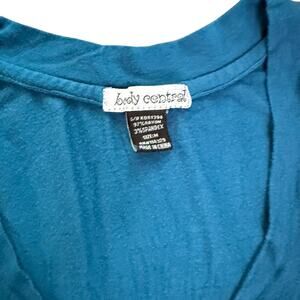 Body Central teal dress with a flattering empire waist and tie-back detail. This lightweight, flowy dress is perfect for summer days, casual outings, or vacations. The rich teal color enhances its simple yet elegant design, while short sleeves provide comfort. The tie-back feature allows for an adjustable fit, making it a versatile piece for various occasions.