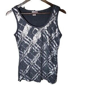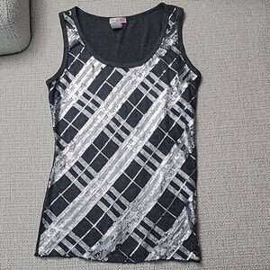 Body Central Womens Grey Silver Sequin Stripes Tank Top Juniors Size Large