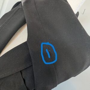 This is a stylish Body Central blazer for women in size Large, featuring a sleek black color with contrasting stripe sleeves that can be rolled up for a trendy look. Made from a blend of polyester, rayon, and spandex, this blazer has a classic button closure and is designed with a flattering blazer style. It also includes functional pockets and button accents for added detail. Perfect for adding a touch of sophistication to any outfit, this blazer is versatile and can be dressed up or down for various occasions. Gently used however one of the sleeves the thread has come apart (see picture less than an inch)