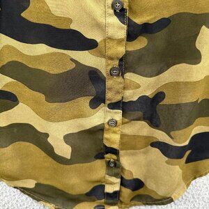 Body Central Womens Top Medium Green Camo Sleeveless Button Front Shirt Blouse