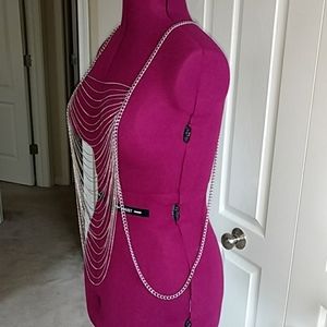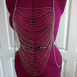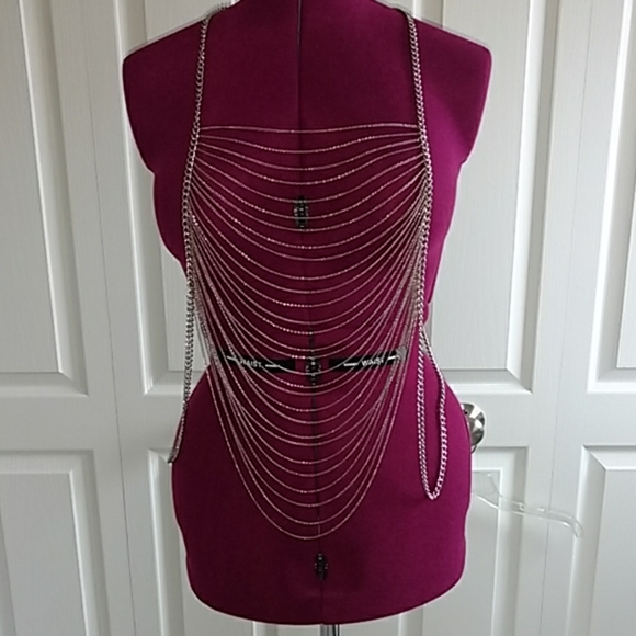 Stainless steel silver in color body chain. Dress up any plain outfit with this unique piece of jewelry.