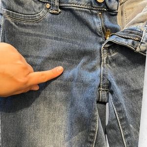 Embrace the sleek silhouette of these Body Con Amethyst jeans, women's size 3. Their skinny fit and low rise cut, accentuated by a stylish medium wash and comfortable stretch fabric, offer a flattering shape. Featuring a unique two-button closure, these jeans are pre-loved with slight stretching around the crotch, adding to their lived-in appeal. Ideal for those who love a blend of comfort and contemporary style in their everyday wear.