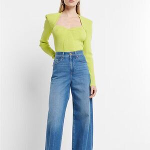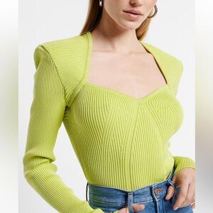 Body Contour Ribbed Sweetheart Neckline Padded Shoulder Sweater size XSmall new