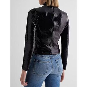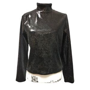 Body Contour Sequin Mock Neck Long Sleeve Tee Sz L