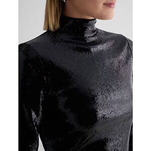 Body Contour Sequin Mock Neck Long Sleeve Tee Sz L Retail $74