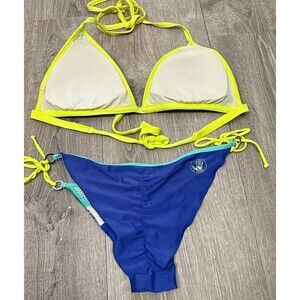Body Glove Bikini Set Small Cheeky Bottoms Tie Side Triangle Top Blue Neon Swim