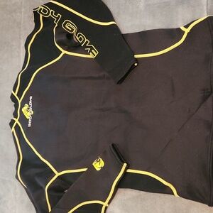 Dive into your aquatic adventures with the Body Glove Rash Guard, featuring a sleek black design accented by vibrant yellow details. Crafted for performance, this swim top offers both style and protection, making it an essential for any water activity. Men's size Medium