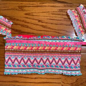 Body Glove Bliss Off The Shoulder Smocked Southwestern Print Bikini Top Size L