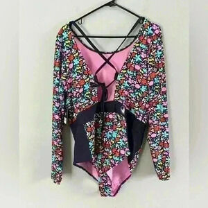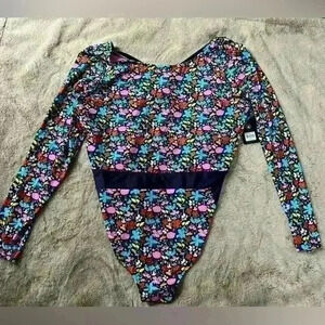 NWT Open back with adjustable tie. SPF 50 spandex and nylon. Long sleeves. Shelf bra. Medium coverage bottom