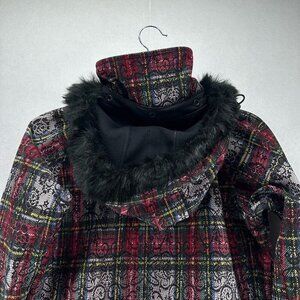 Body Glove Jacket Women Size S Plaid Faux Fur Trim Fleece Lined Hoodie Waterproof Red