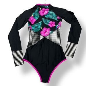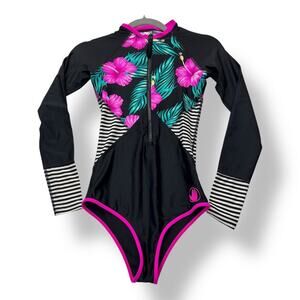 Body Glove Molokai Surface Rashguard Women's XS Black Hawaiian Floral Print Surf