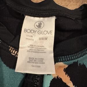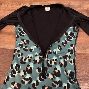 Body Glove One Piece Long Sleeve Swimsuit Rash Guard Black Teal Leopard Print M