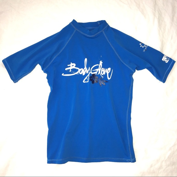 Minimally used rash guard for surfing or just sun protection, by Body Glove, size is girl’s Large, but easily fits a women’s Small (I’m a size 2ish, see pic of me wearing it and note that there’s also a lot of stretch beyond that too if you were blessed with boobs). This is in excellent condition, with just some very slight wear on lower front, and a black smudge on the left arm (both issues shown in last two pics). I have some other beach wear in my closet, so bundle and save! 🏄♀️