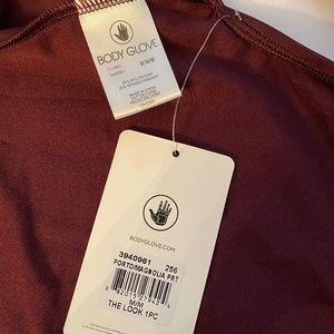Body Glove The Look One-Piece Swimsuit, in Porto/Magnolia, retro one-piece swimsuit features a screen printed logo across the front, a scooped neckline and high-cut sides to elongate your legs. Hygiene protective liner still attached.