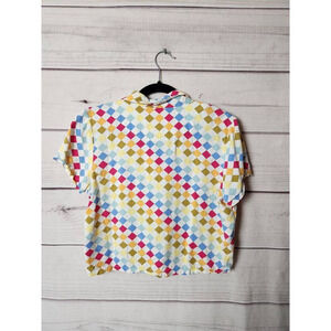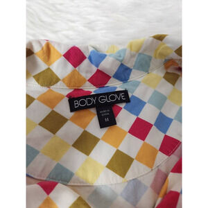Body Glove Womens Button Up Shirt Multicolor Geometric Short Sleeve Pocket Y2K M